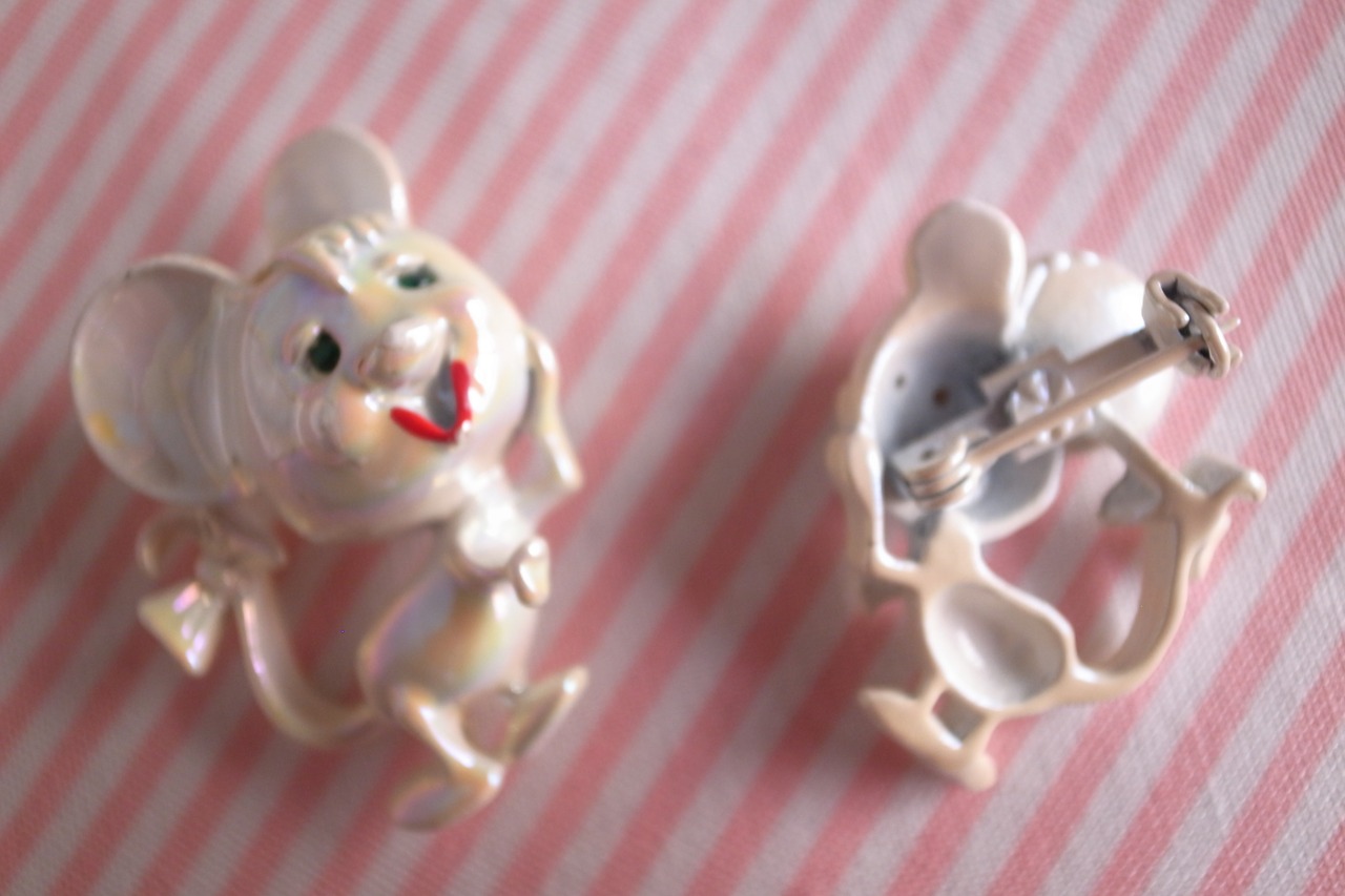 ヴィンテージ オーロラ 白いねずみのブローチ (小)