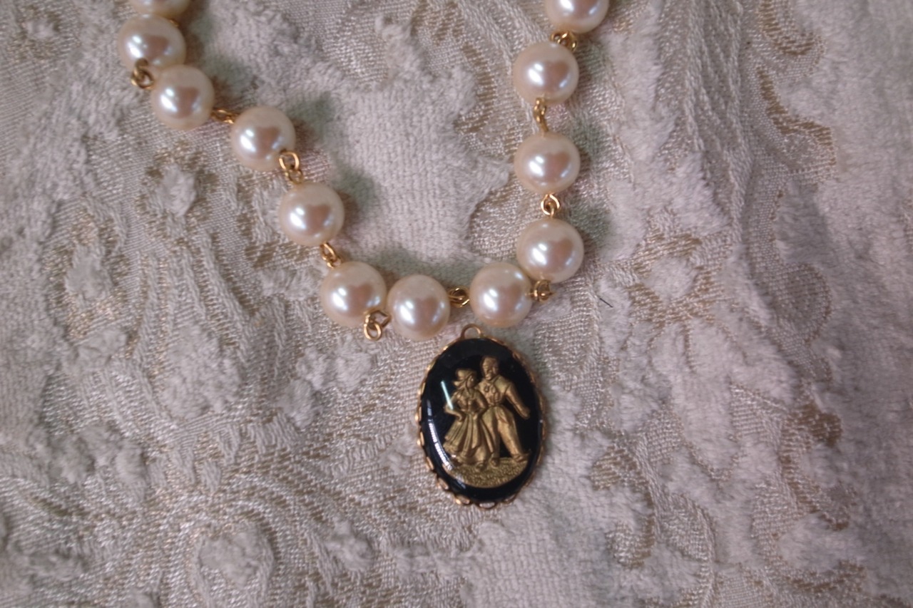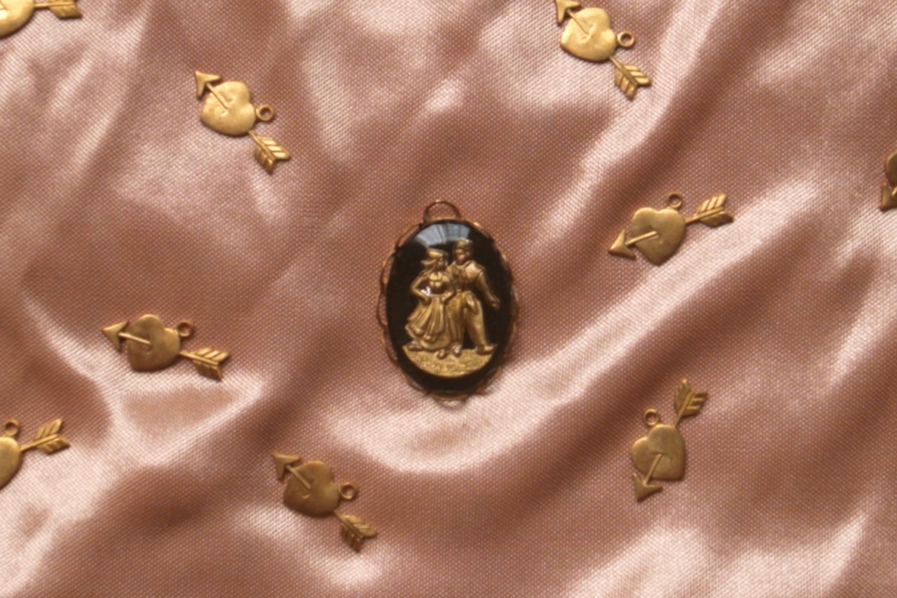 ヴィンテージ 恋人たち 男女 チャーム 黒地のカボション アンティーク ビンテージ