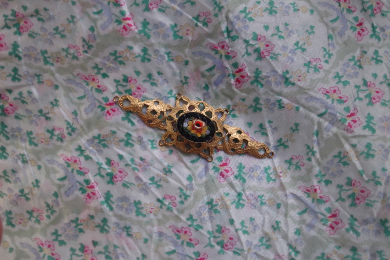 ヴィンテージ イタリアンマイクロモザイク オレンジのバラの花 セッティング 真鍮 ゴールド 60s アンティーク