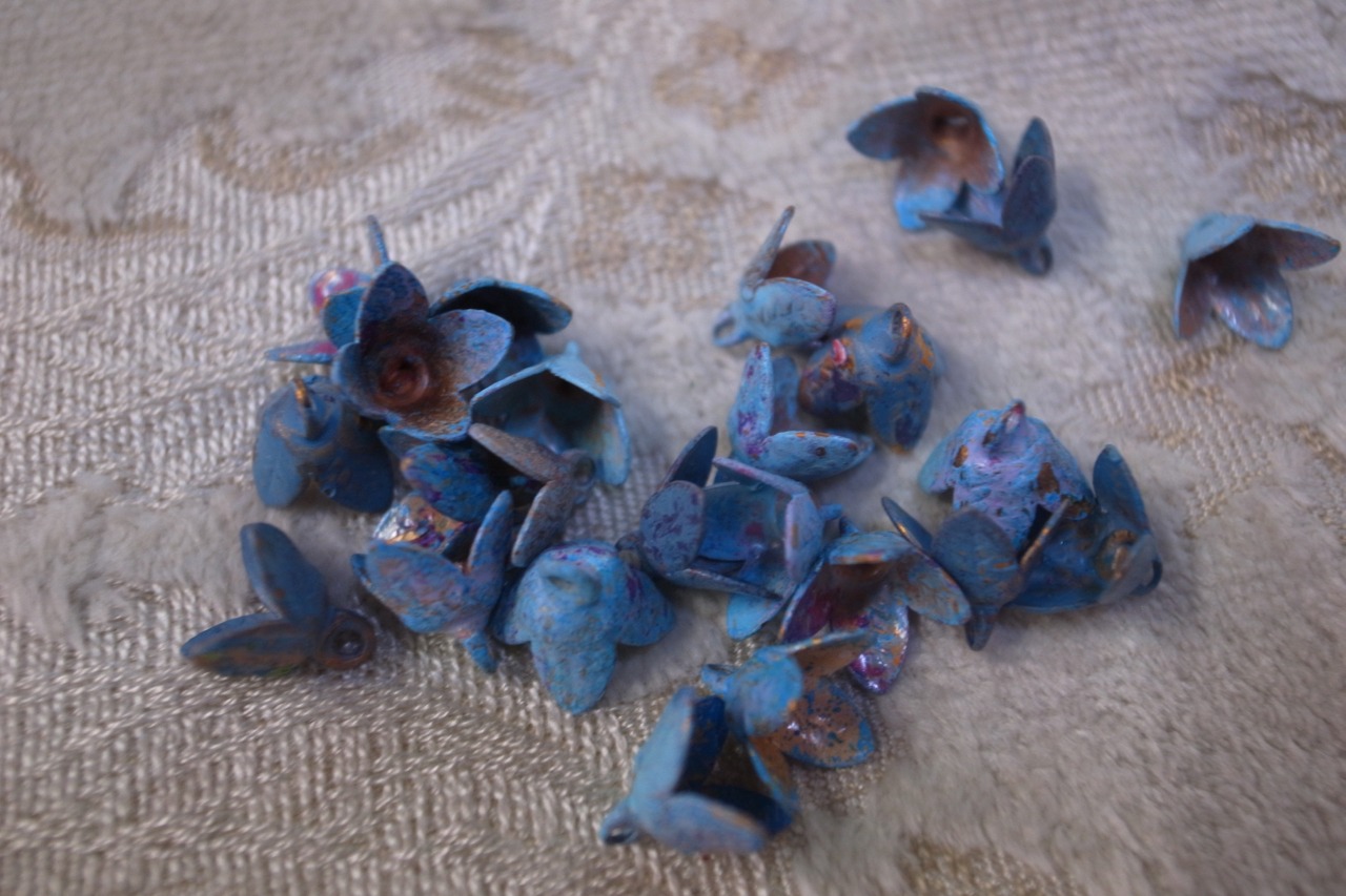 ヴィンテージ 青い小花 花弁 アクセサリーパーツ 4P チャーム ハンドメイドパーツ アンティーク