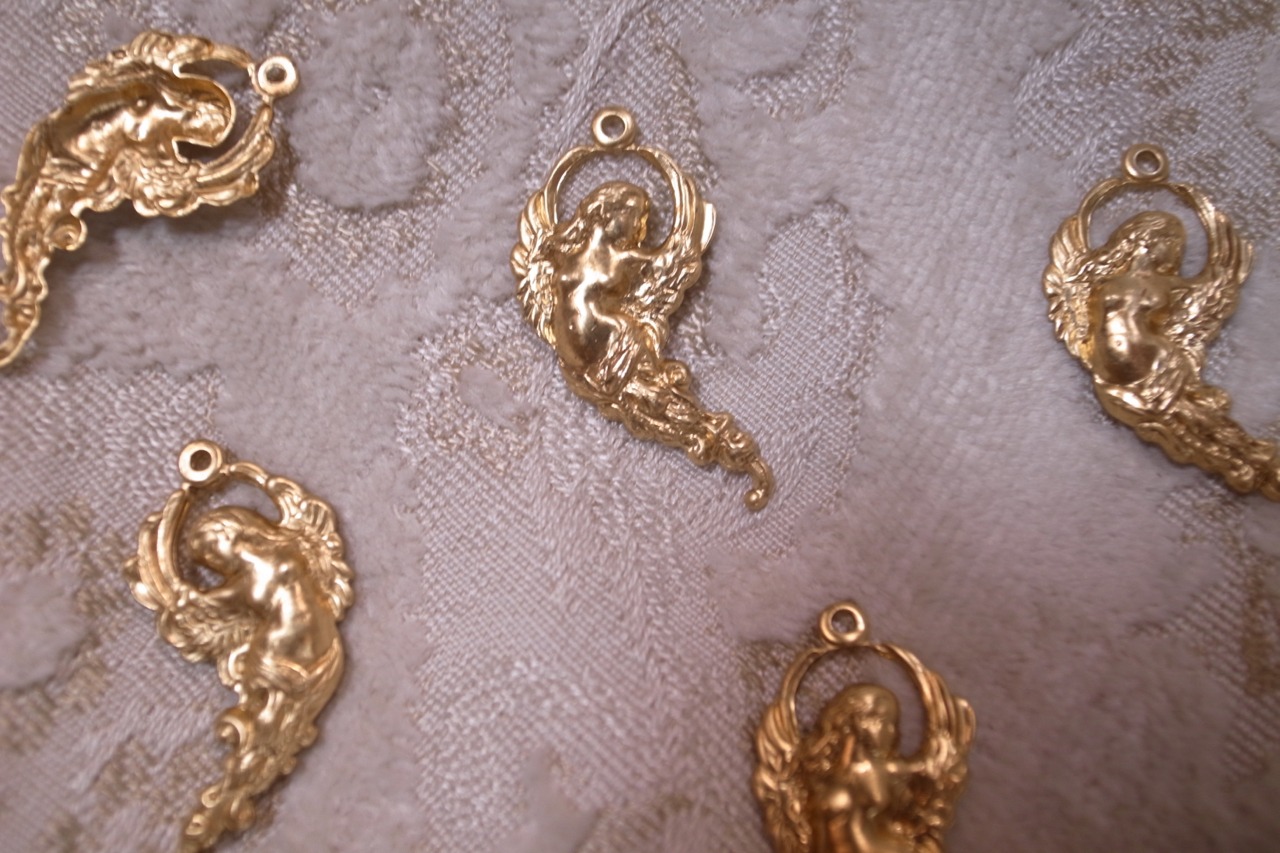 ヴィンテージ (a) ハーピア セイレーン チャーム ファンタジー 真鍮 アクセサリーパーツ 80s ゴールド ハーピー セイレン アンティーク